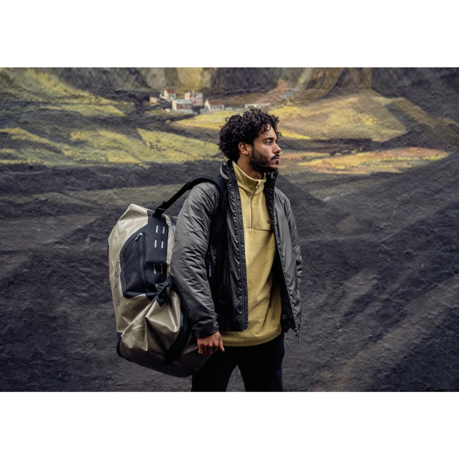 The Duffle encloses clothing & Co. waterproof and can be quickly converted into a practical backpack by its comfortably padded shoulder straps, which can also be used as carrying handles. The long, splash-proof and dust-proof TIZIP zipper allows quick access to the equipment, whose pack size can be further reduced with the internal compression strap. Its reinforced bottom made of abrasion-resistant PS620C fabric makes it a durable expedition partner.