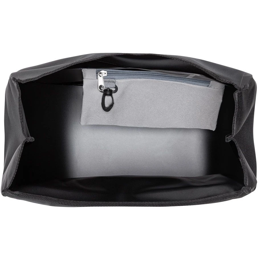 The 12-liter volume at 10 kilograms payload that the bag offers is always kept absolutely dry by the roll closure, which also functions as a carrying handle when closed. The bag is thus suitable not only for a small shopping trip, but also for longer bike tours.