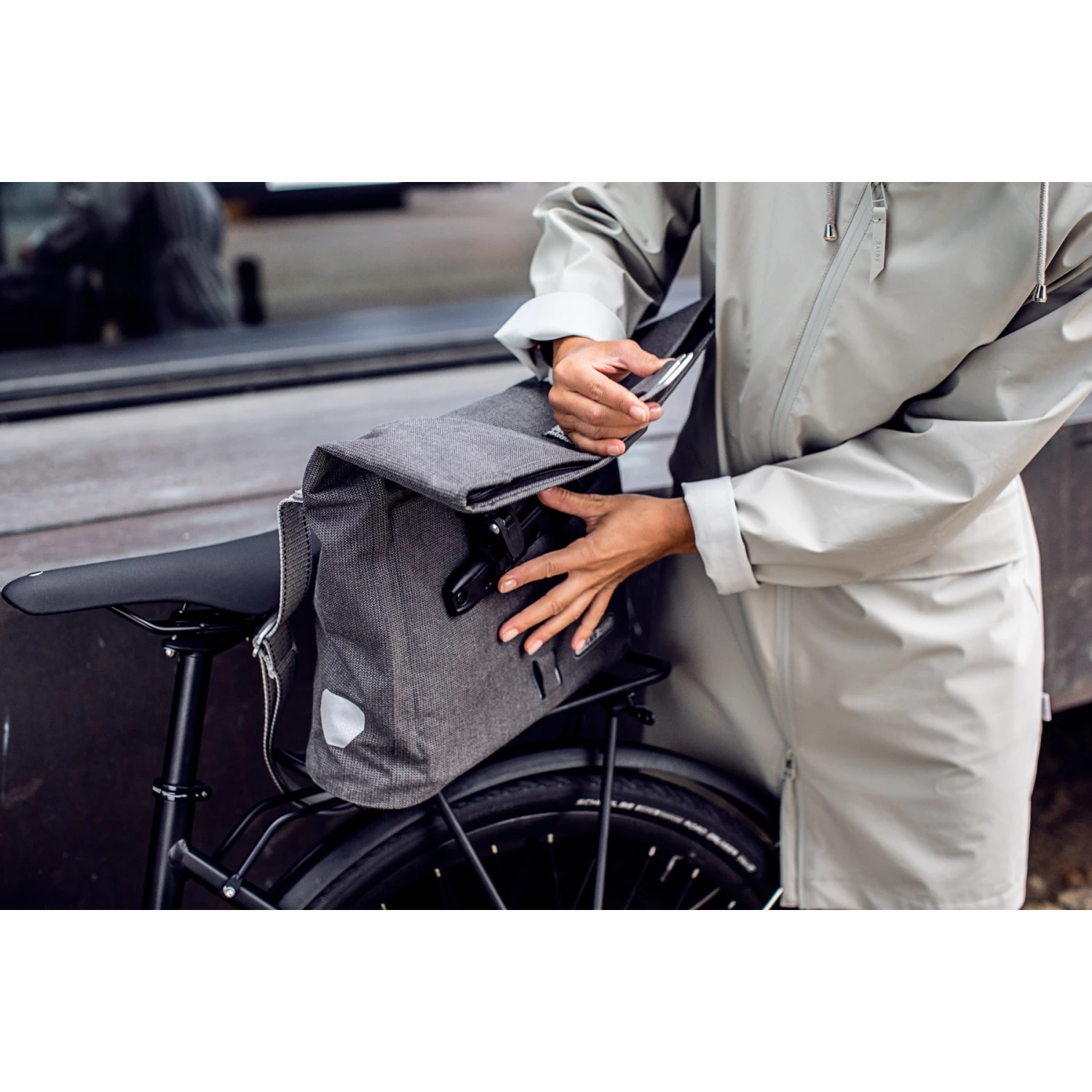 This bag is the 2-in-1 solution for all those whose favourite means of transport in the city is the bike. Depending on which side you turn the folding lid, you can use it in two different ways: Thanks to the QL2.1 hook system, you can attach it directly to the carrier. The shoulder strap is safely stored in an extra pocket. After your ride, you can flip the cover over to the other side – covering the bike hooks on the outside – and hang it over your shoulder. It couldn’t be more comfortable! And no one would ever guess that this stylish shoulder bag is also a practical bike bag.
