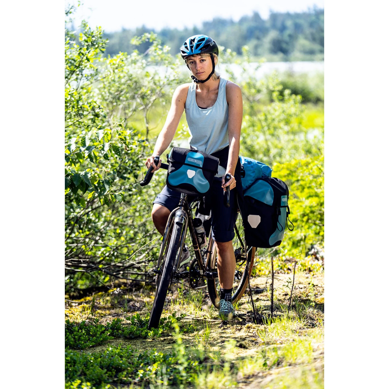 The Ultimate Six Classic made of waterproof polyester fabric belongs to the basic equipment of every touring cyclist. The reinforced lid with magnetic closure provides the extra stability. Compatible is the Ultimate Six Classic with all ORTLIEB mounting sets and Rixen & Kaul adapters. With removable shoulder strap for comfortable transport on foot.