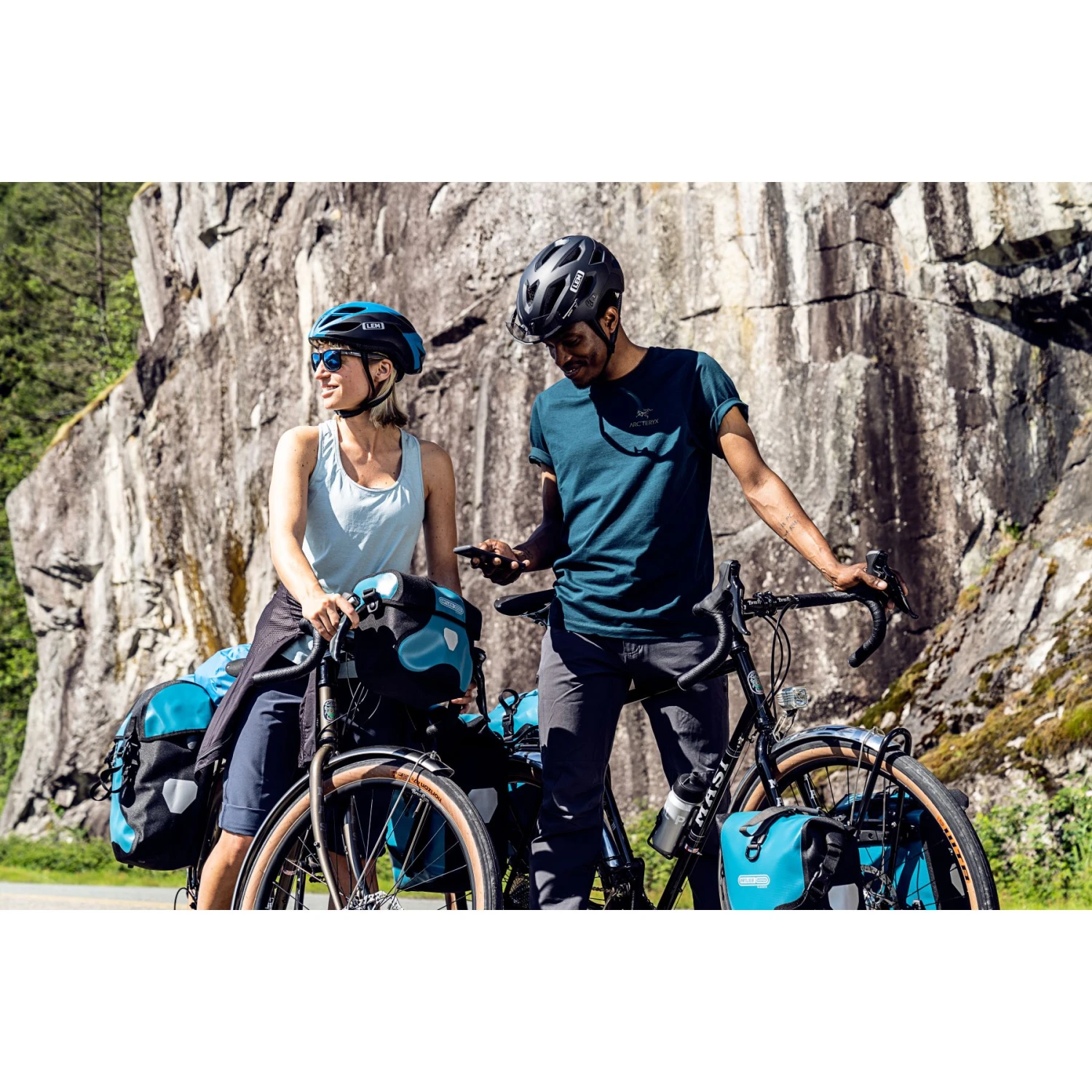 The Ultimate Six Classic made of waterproof polyester fabric belongs to the basic equipment of every touring cyclist. The reinforced lid with magnetic closure provides the extra stability. Compatible is the Ultimate Six Classic with all ORTLIEB mounting sets and Rixen & Kaul adapters. With removable shoulder strap for comfortable transport on foot.