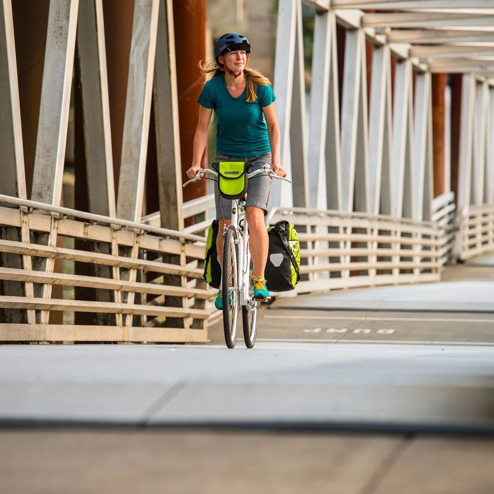 With 2.7 L volume, this handlebar bag offers enough space for basics such as wallet, keys, smartphone, notebook and a snack. So you can also use it well as a solo bike bag in city traffic when you cycle to an appointment. But of course it also makes a good ensemble with the classic panniers Back-Roller and Sport-Roller from the Free-Line range.