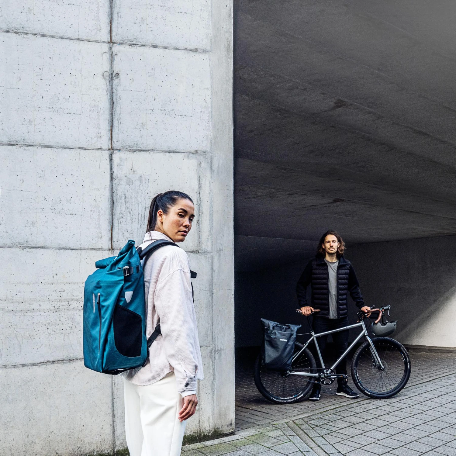 The ORTLIEB Vario PS is the solution for all those who commute to work or university by bike – and like to go for a stroll in the city during their lunch break or in the evening. You can quickly switch between the two systems using the reversible front pocket.